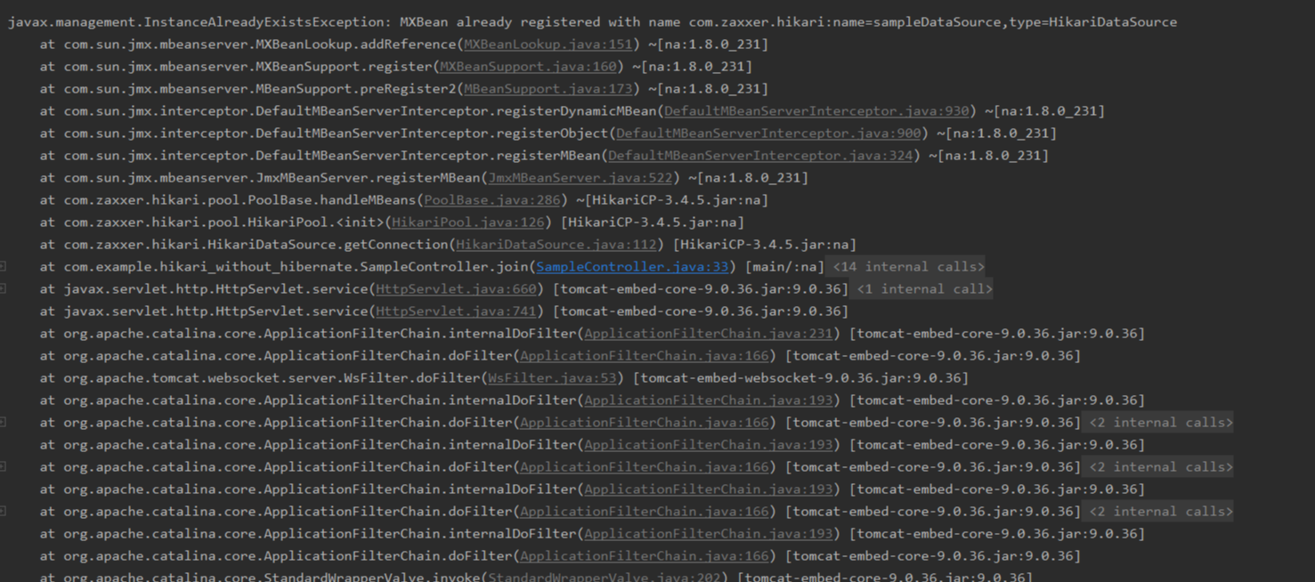 HikariPool MBean과 sampleDataSource MBean을 등록하게 되고