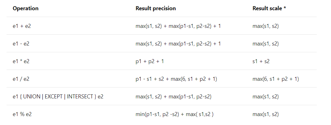 DECIMAL 계산이 아래 규칙을 따르기 때문입니다.
